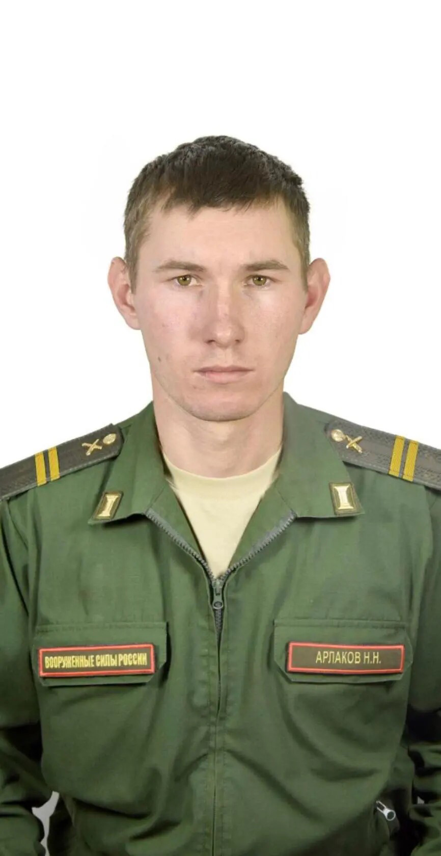 Никитa Николаевич Арлаков родился 22 февраля 1997 годa в селe Исингa Еравнинскогo районa. Окончил Исингинскую среднюю школy. Практически сразу вчерашний выпускник был призван в ряды Российской армии на срочную службу.