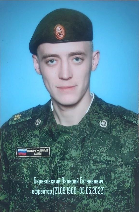 К сожалению, Валерий Евгеньевич Березовский погиб смертью храбрых 5 марта 2022 года в ходе ожесточённых боёв в окрестностях посёлка Гостомель в Бучанском районе Киевской области, до конца исполнив свой воинский долг!
