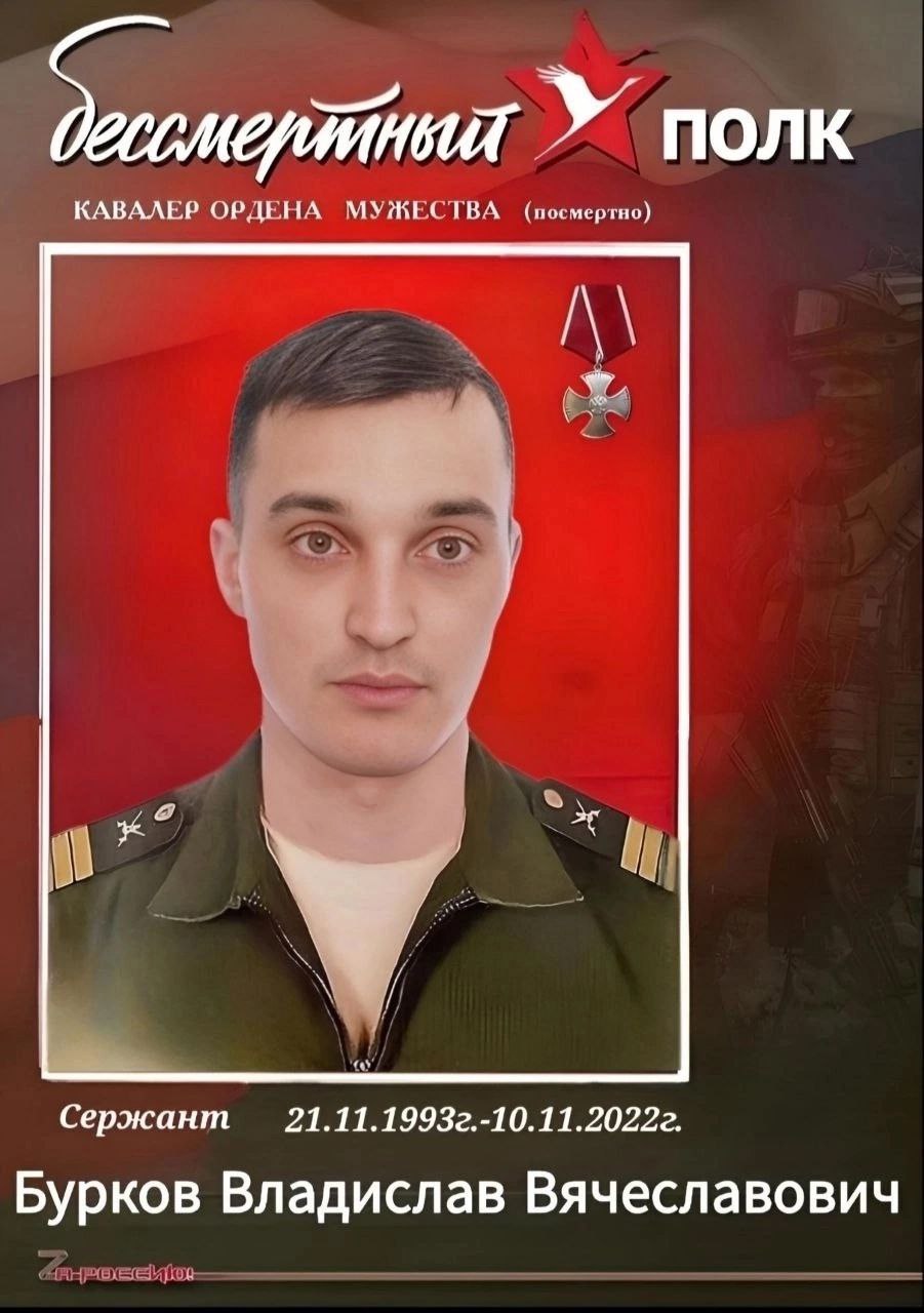 ...Гвардии сержант Бурков Владислав Вячеславович (позывной «Бурыч») погиб 10 ноября 2022 года, выполняя боевую задачу.